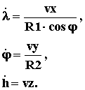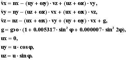В алгоритме работы инерциальной навигационной системы будем использовать уравнения навигации, записанные в полусвязанной системе координат.