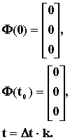 где где Разделим шаг решения на n-1 частей ( n - число узлов внутри шага) - на 2 в данном случае. Зададим начальное значение вектора конечного поворота: Уравнение, описывающее поведение вектора конечного поворота, имеет вид: где F(t)