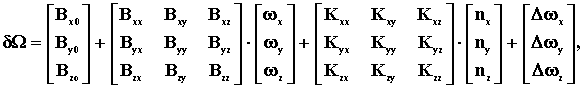 Одна из проблем состоит в том, что при повышении точности системы за счет использования более точной, нелинеаризованной модели погрешностей резко повышается размерность системы. Это происходит из-за того, что модели погрешностей гироскопов и акселерометров имеют следующий вид: где Bii - ошибки масштабных коэффициентов, Bij (i ¹ j) - ошибки установки осей чувствительности гироскопов относительно осей приборного базиса, Bio - постоянные составляющие дрейфов гироскопов, Kij - погрешности от небаланса гироскопов. где Aii - ошибки масштабных коэффициентов, Aij (i ¹ j) - ошибки установки осей чувствительности акселерометров относительно осей приборного базиса, Aio - погрешности смещения нулей акселерометров. При